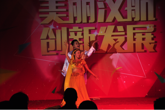 晚會(huì)當(dāng)晚各部門精心準(zhǔn)備的精彩節(jié)目輪番上演。炫酷十足的《撐腰舞》展現(xiàn)出智華的別樣風(fēng)采;風(fēng)趣幽默的小品《We are “伐木累”》結(jié)合各各部門的特色,讓大家捧腹大笑;一首《我要飛》引出無人機(jī)承載著“美麗漢航,飛向世界”的旗幟飛向舞臺(tái),祝愿漢航在新一年將飛得更高更遠(yuǎn);一支曼妙的印度舞《麗達(dá)之歌》神秘而又古老,讓人陶醉其中;小品《漢航傳奇》帶我們穿越回清朝,大尺度的反串演繹更是把整場(chǎng)晚會(huì)推向高潮;青春活力的舞蹈《LOVE》讓人眼前一亮;鑫漢盛“小吉他手”吉他彈唱《光輝歲月》,絲絲柔情,緬懷舊時(shí)光,臺(tái)風(fēng)氣場(chǎng)頗有星味,引起全場(chǎng)陣陣呼聲。
