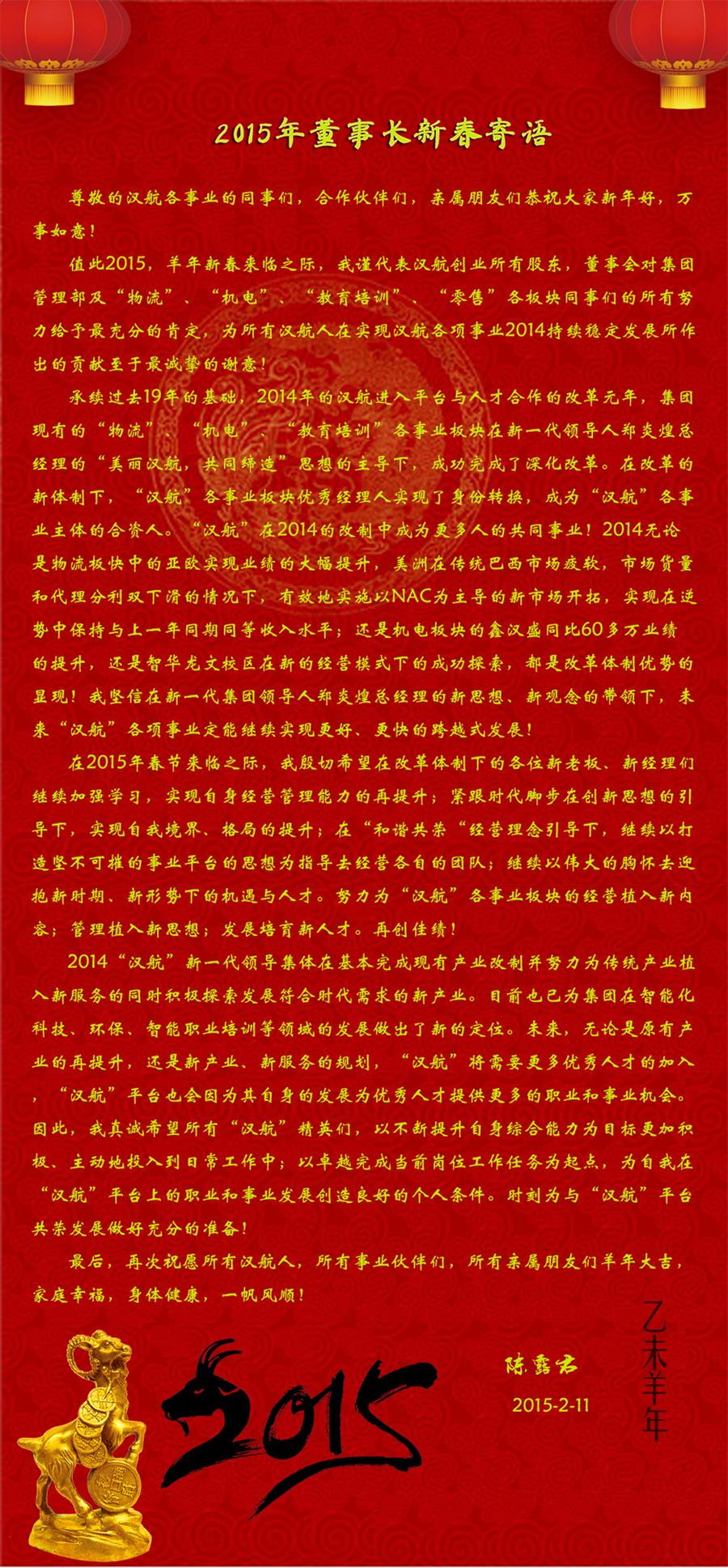 尊敬的漢航各事業(yè)的同事們,合作伙伴們,親屬朋友們恭祝大家新年好,萬事如意!